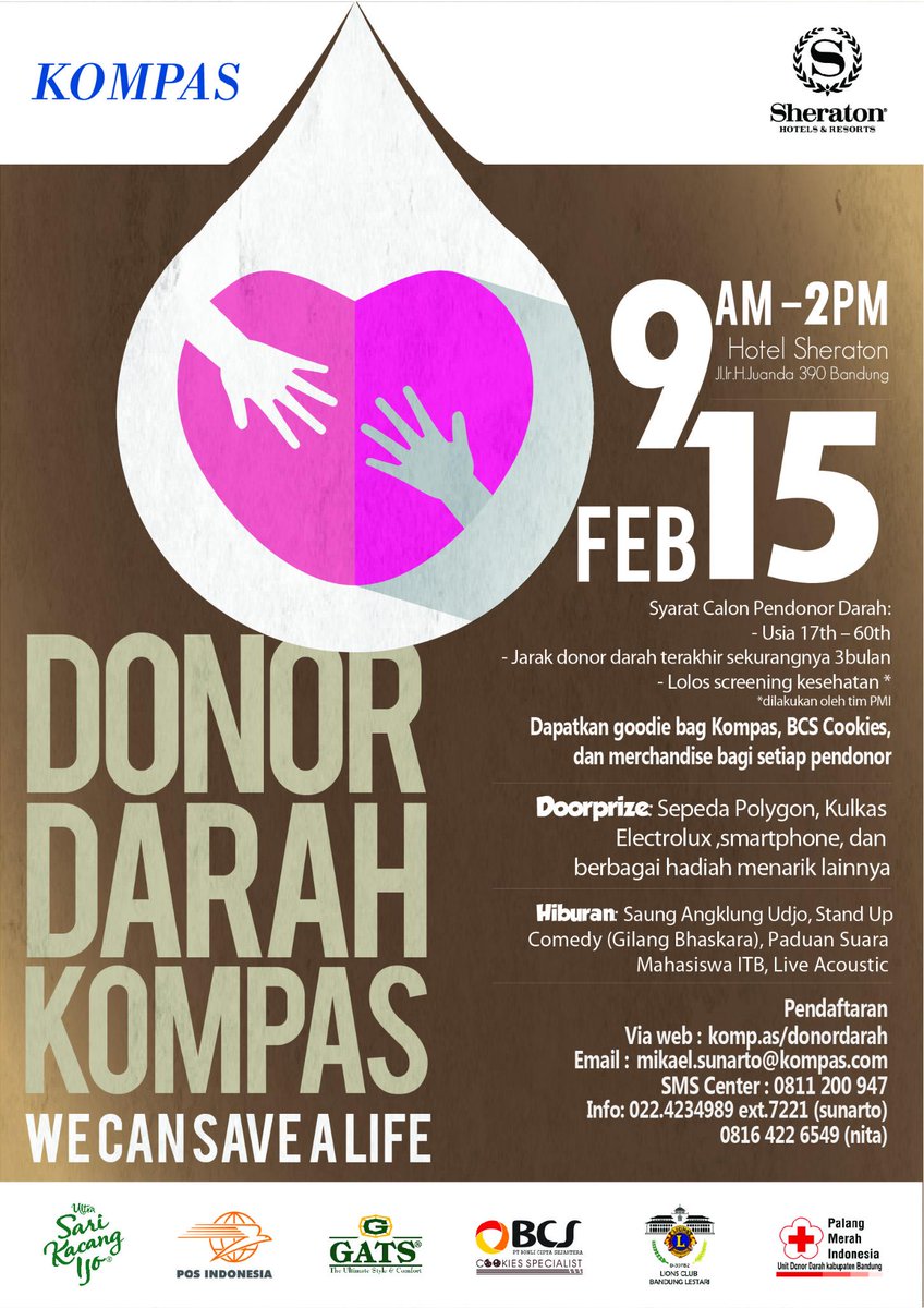 @infobdg menge-tweet: Yuk ikuti #DonorDarah yg diselenggarakan @hariankompas, 15/2 di Hotel Sheraton BDG