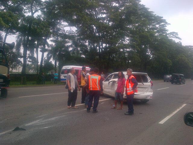 @TMCPoldaMetro menge-tweet: Kecelakaan sebuah Mobil di ruas Tol Jagorawi arah Jakarta KM 32, penanganan petugas RT @Ketegaharu