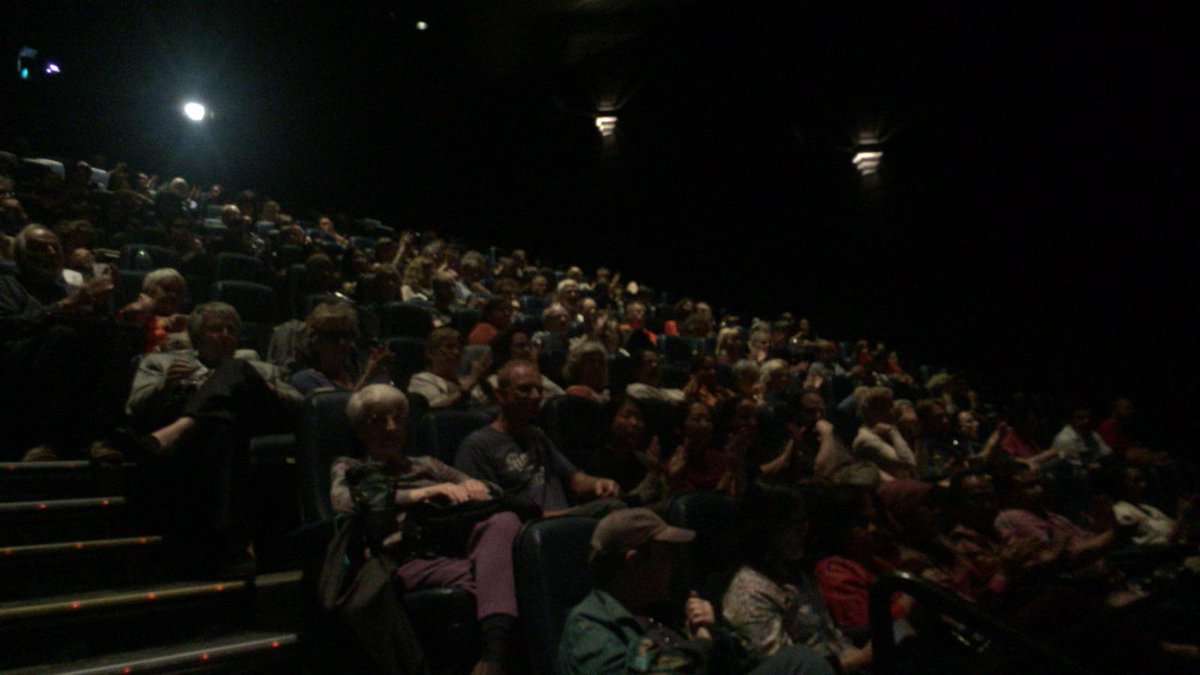Joko Anwar menge-tweet: Di Indonesia aja nggak pernah muter film nggak pernah full house kayak gini huaa.. Terharu..