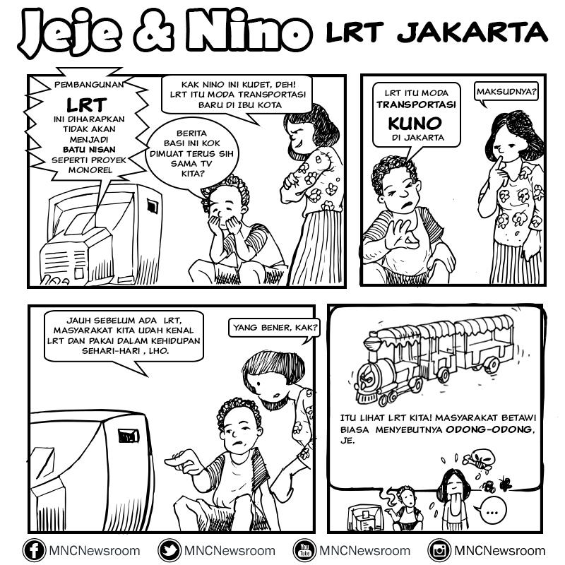 MNC NEWSROOM menge-tweet: Pembangunan monorel, dibatalkan. Kalau LRT, batal lagi gak, ya? #LRT #JejeNino #KomikJejeNino